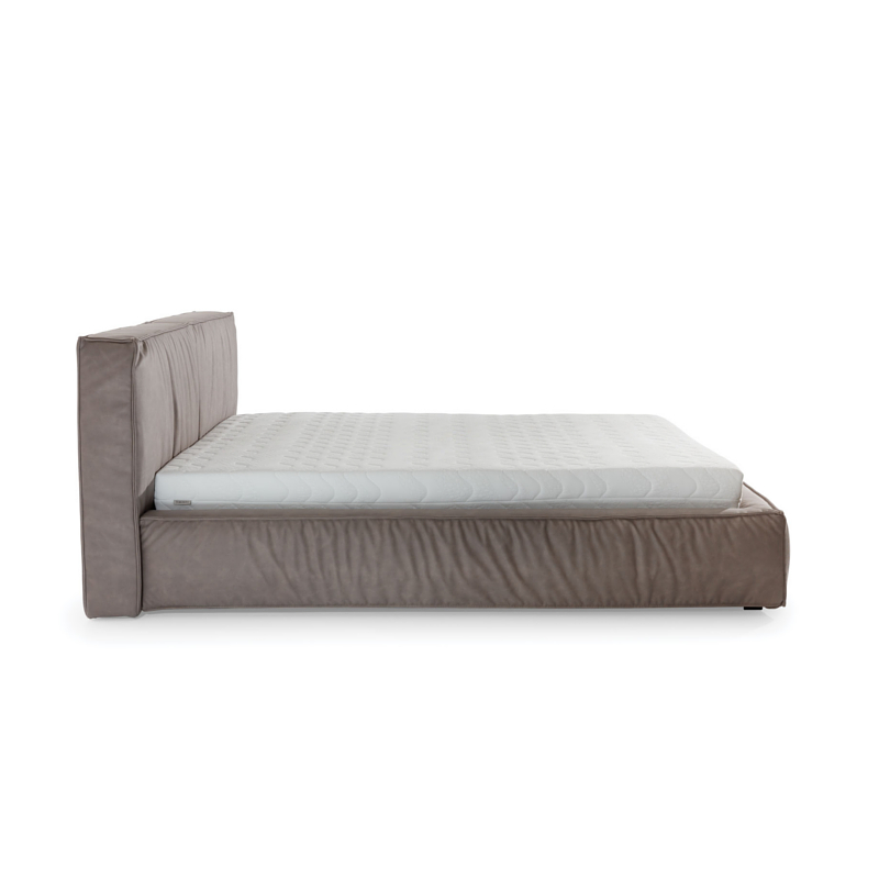 Nowe łóżko z grubym, geometrycznym, dzielonym pionowo na dwie części zagłówkiem z ozdobnymi szwami i marszczeniami. Minimalistyczne włoskie wzornictwo doskonale komponujące się z różnymi elementami innych zestawów do sypialni ( np. MultiDecor, Loft, GlassLoft).